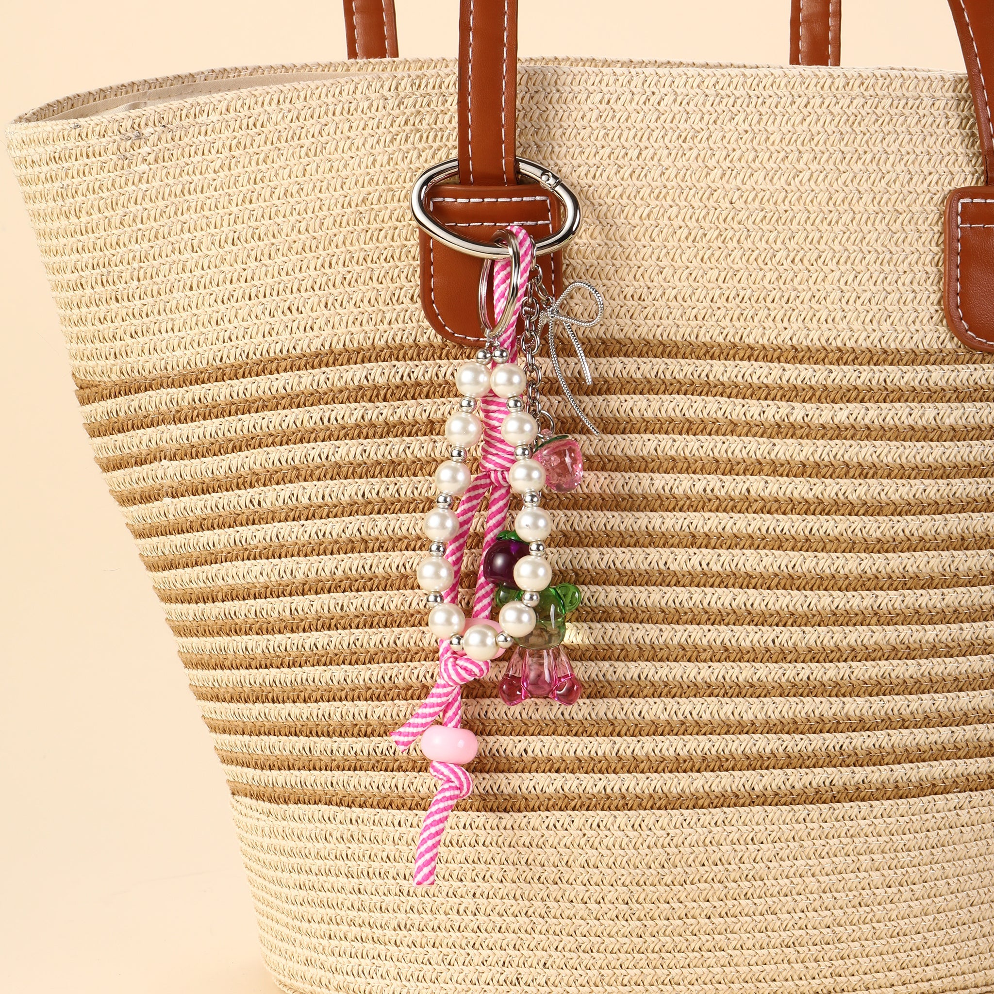 Charming Pink & White Pearl Purse Charm, a feminine accessory that adds elegance and sparkle to handbags, totes, and backpacks.
