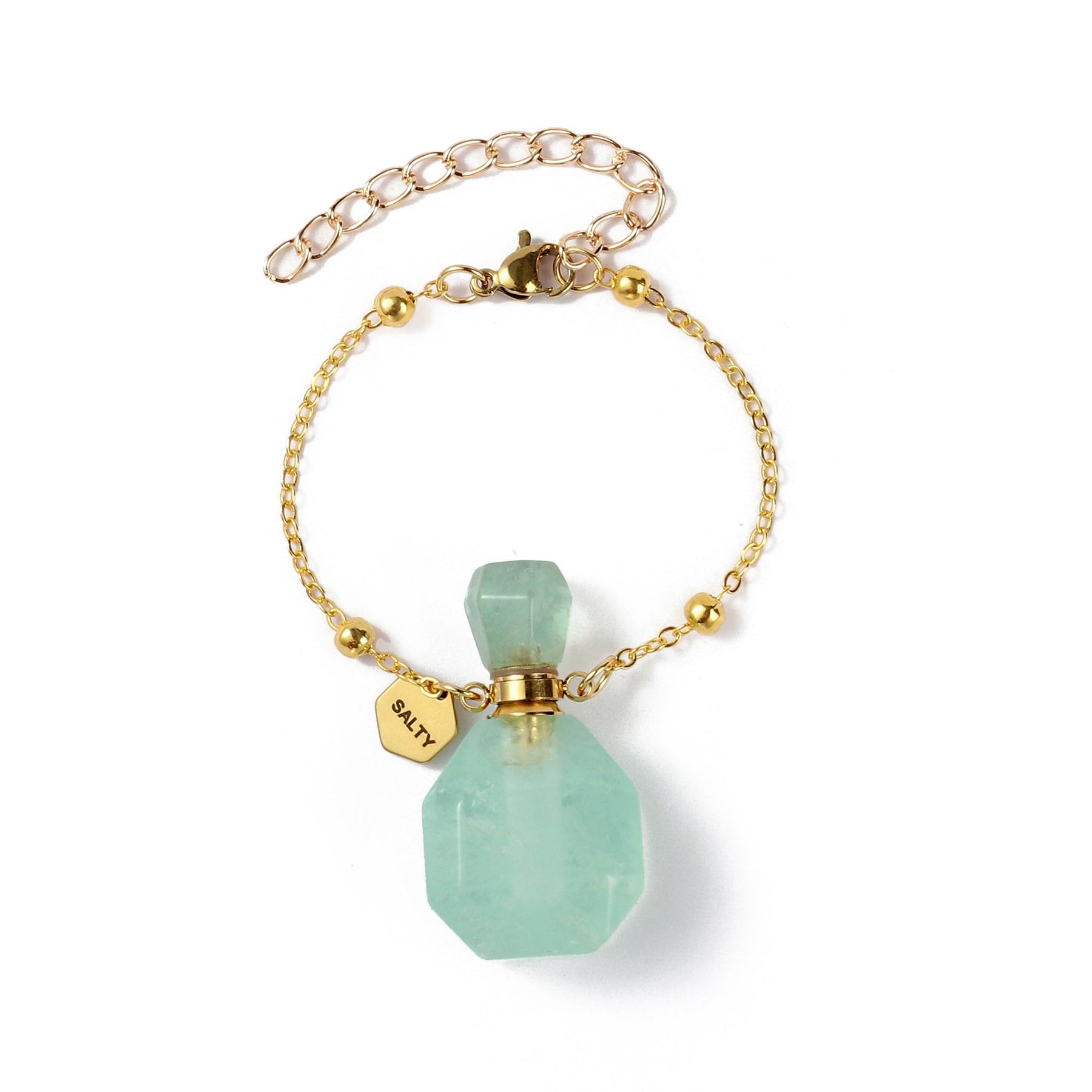The Prasiolite Perfume Bottle Charm exudes elegance with its green Prasiolite design and classic perfume bottle shape. Its smooth, translucent hue adds a refreshing touch to your keychain or handbag, bringing both style and positive energy.