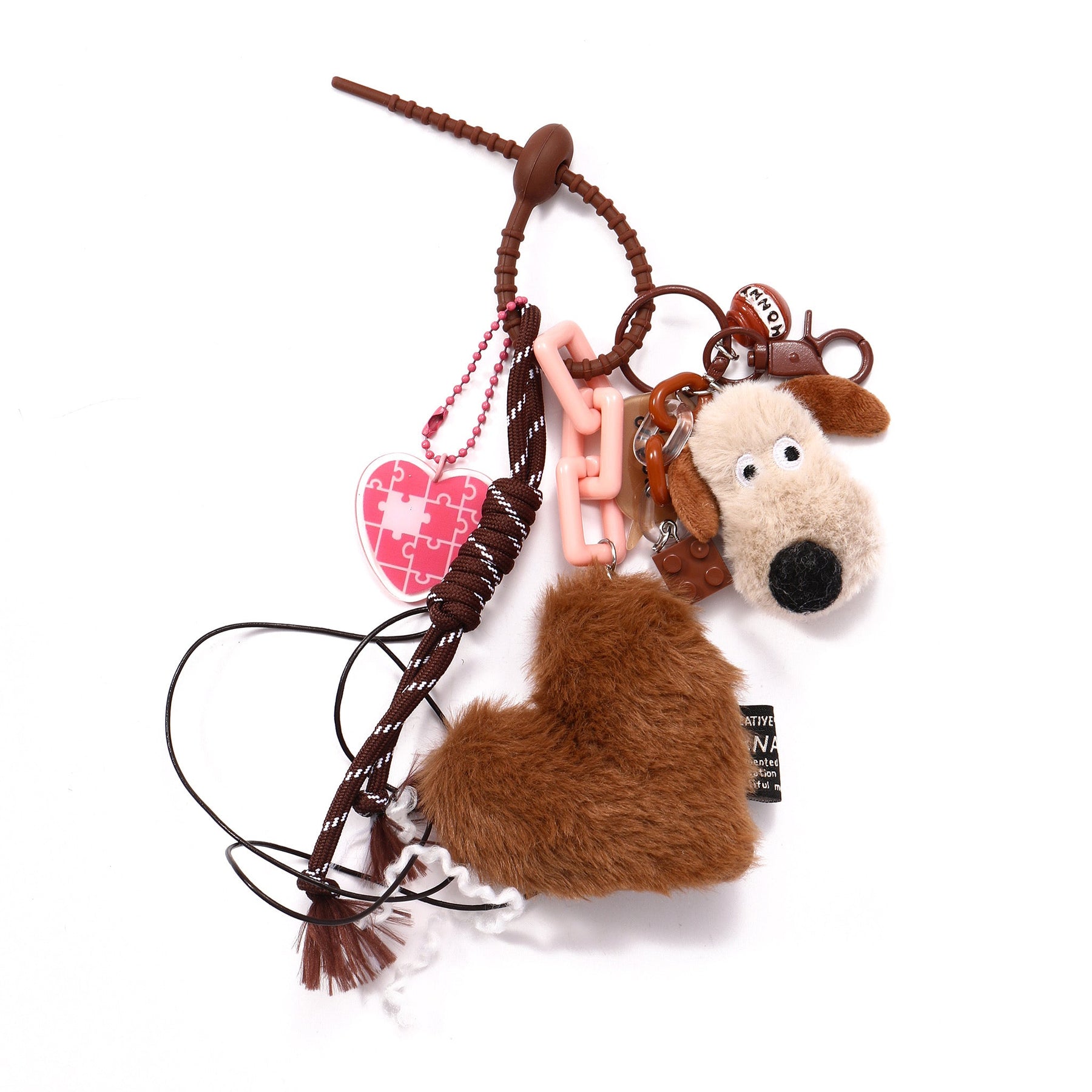 Bring fun and warmth to your accessories with the Furry Friend Charm Set. This playful collection features a variety of adorable charms, including a soft puppy face, a brown heart-shaped leather charm, and a colorful mix of beads and tassels. The sweet puppy design and the clever “Stuck on You” puzzle-piece tag add a delightful, personal touch to any bag or keychain.