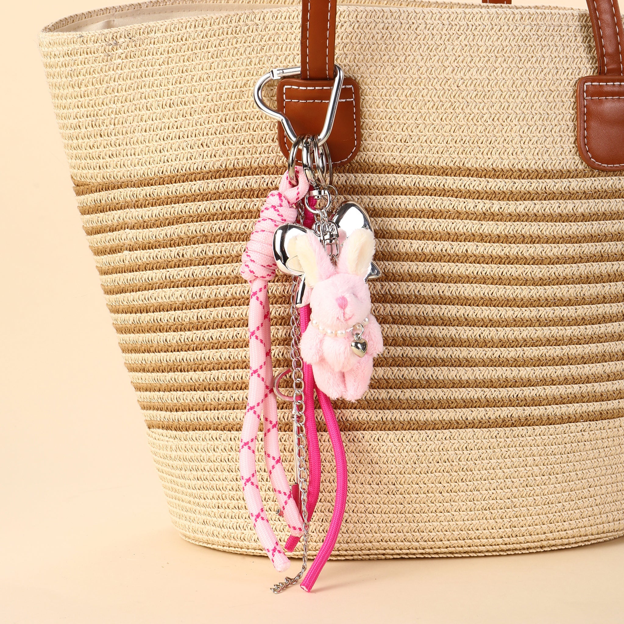 Pink Bunny Keyring Charm for Bags & Backpacks