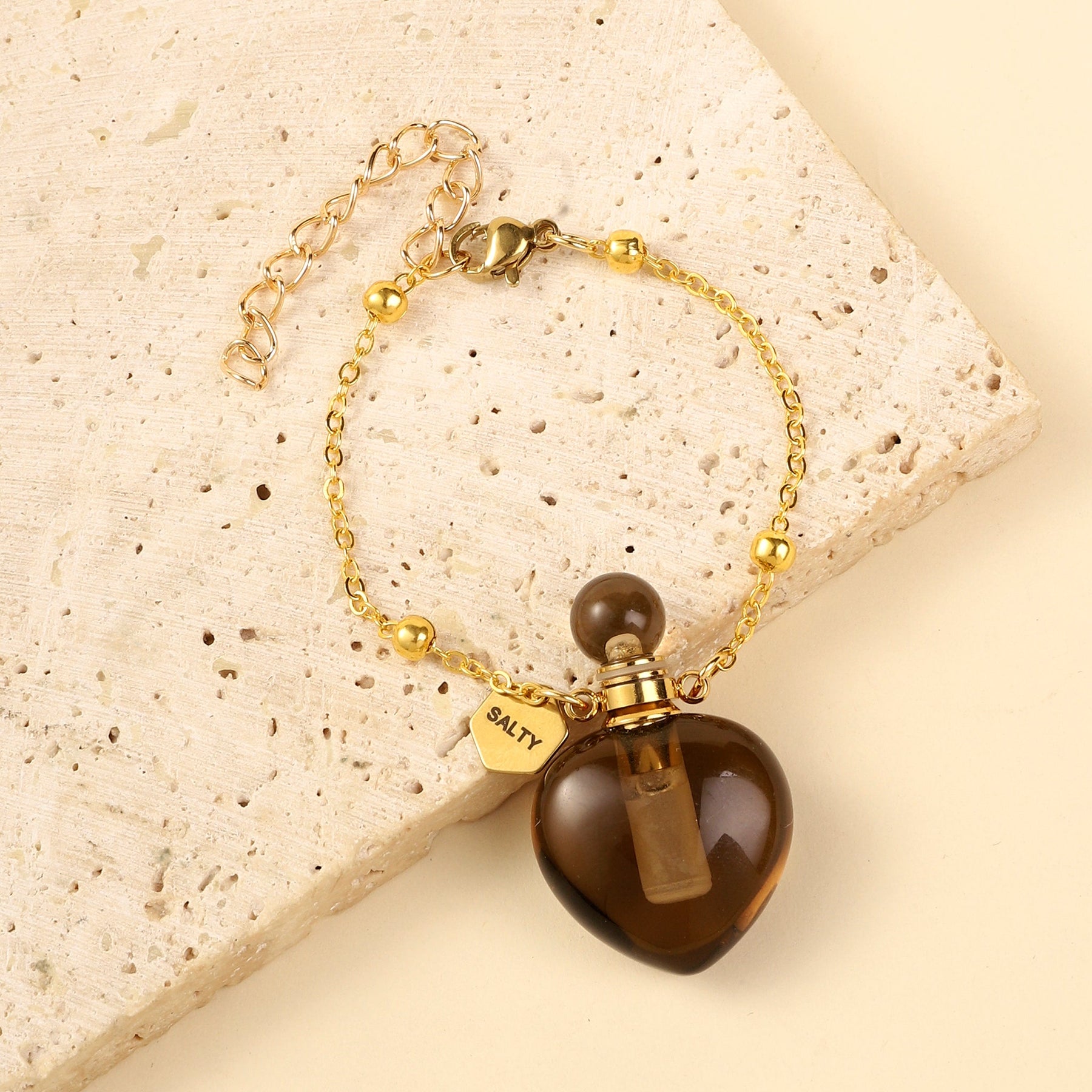 Add elegance and mystique to your accessories with the Smoky Quartz Perfume Bottle Charm, featuring a polished smoky quartz stone in a delicate perfume bottle design. Perfect for bags or keychains, it brings a sophisticated, grounding touch with timeless style.